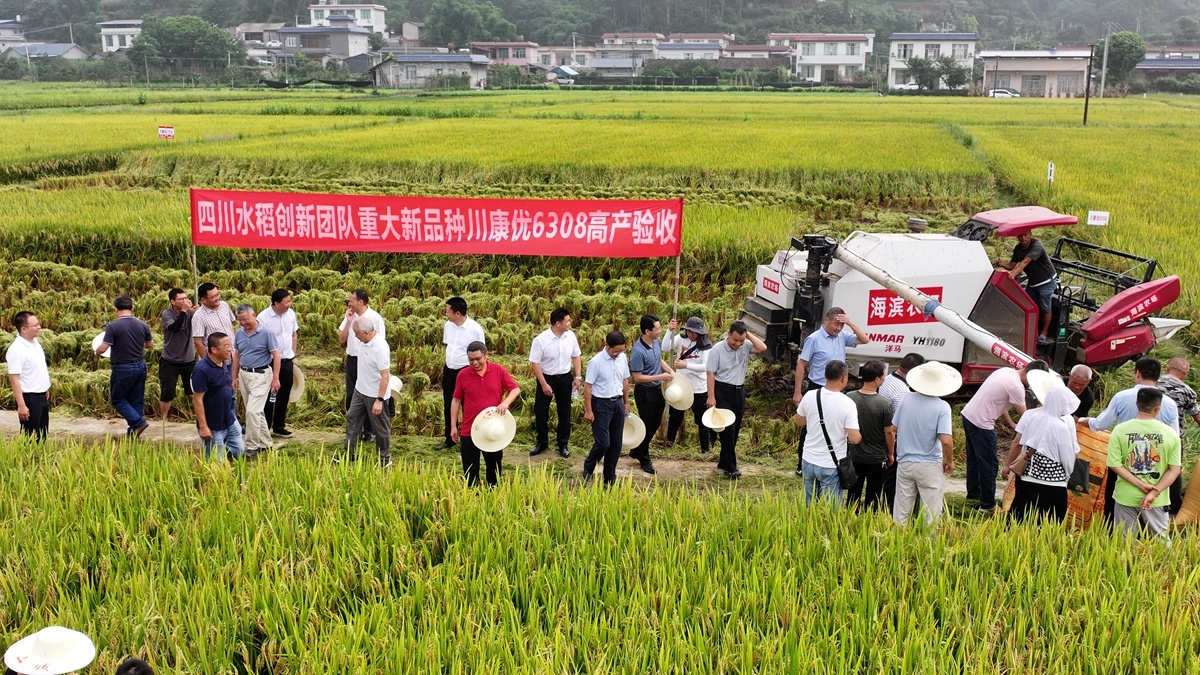 “3个测产田块,最终测得平均亩产干谷830.6公斤!”8月21日上午10点,在乐山市夹江县新场镇东山村,水稻新品种“川康优6308”百亩高产示范片正在进行测产验收。随着验收专家组组长、重庆市农业科学院李经勇研究员宣读测产结果,现场响起了一片热烈的掌声。这个产量水平意味着“川康优6308”达到超级稻认定标准,可按照相关程序向农业农村部申报认定为超级稻。