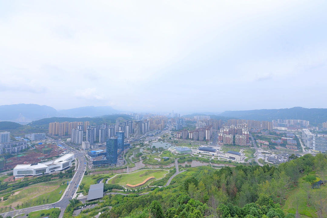 “三江之眼”为宜宾市重点文旅融合示范项目,获2022世界建筑节“杰出设计奖”,位于三江新区龙头山城市森林公园顶端,占地约100亩,总建筑面积约10936平方米,最高海拔520米,是一座集城市会客、商务接待、休闲观光、科普教育、生态研学、亲子互动为一体的城市会客厅。站上“三江之眼”眺望,27平方公里龙头山森林公园,1500亩竹文化公园尽收眼底,四周植被繁盛茂密,犹如镶嵌于龙头山森林公园的一双灵眸,西南方可远眺长江,一览“近城、中水、远山”美景。