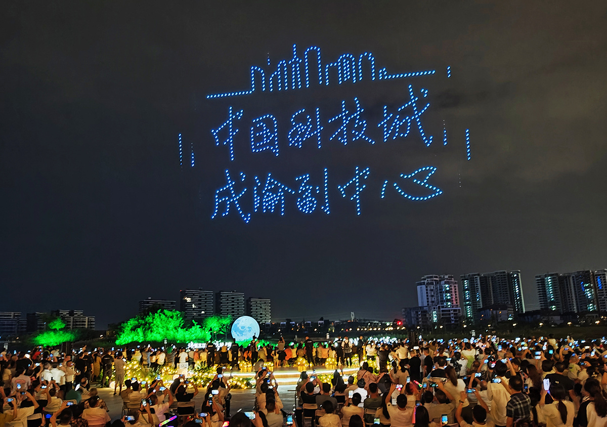 不久前,一场在青义镇金西湖畔举行的无人机表演“刷爆”了绵阳人朋友圈。成百上千架无人机在夜空中排列出不同的造型,当看到“宇航员”在夜空中挥手时,现场观众发出阵阵欢呼。