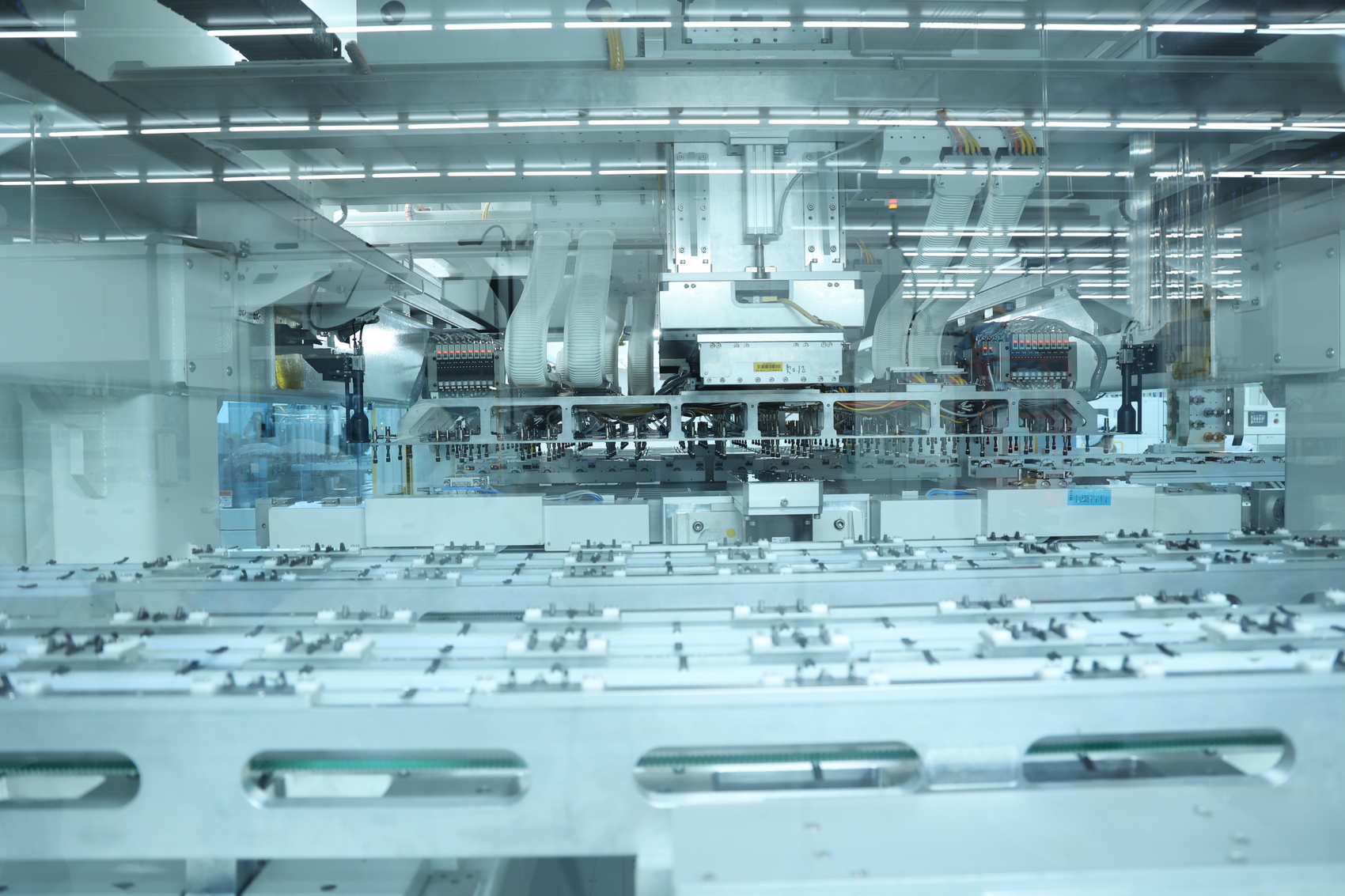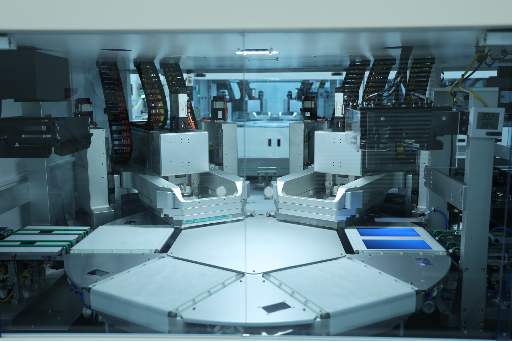 2023省重点项目、位于四川丹棱经开区的眉山琏升光伏8GW高效异质结电池项目正式投产,在总长度535米的无尘车间内,工业互联网与生产制造之间经过智能平台将基础信息流整合,机械臂、自动上料机器人、自动叉车等智能化设备高效配合、自动运转,一片片电池片从生产线下线,即将成为各地光伏发电的重要零部件。