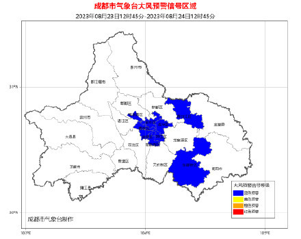 成都市气象台2023年08月23日12时45分发布大风蓝色预警信号: