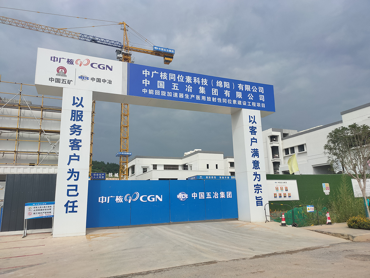 与周边绿树成荫的景色不同,这里是一片忙碌热闹的场景。站在中能回旋加速器生产医用放射性同位素建设工程项目门外,可以看到几栋白色楼房主体已基本完工,透过外墙看到工人们正在建筑内进行内部装修工作。“中国(绵阳)科技城核医疗健康产业园共规划了约4000亩、5个组团,这里是其中的生产组团。”