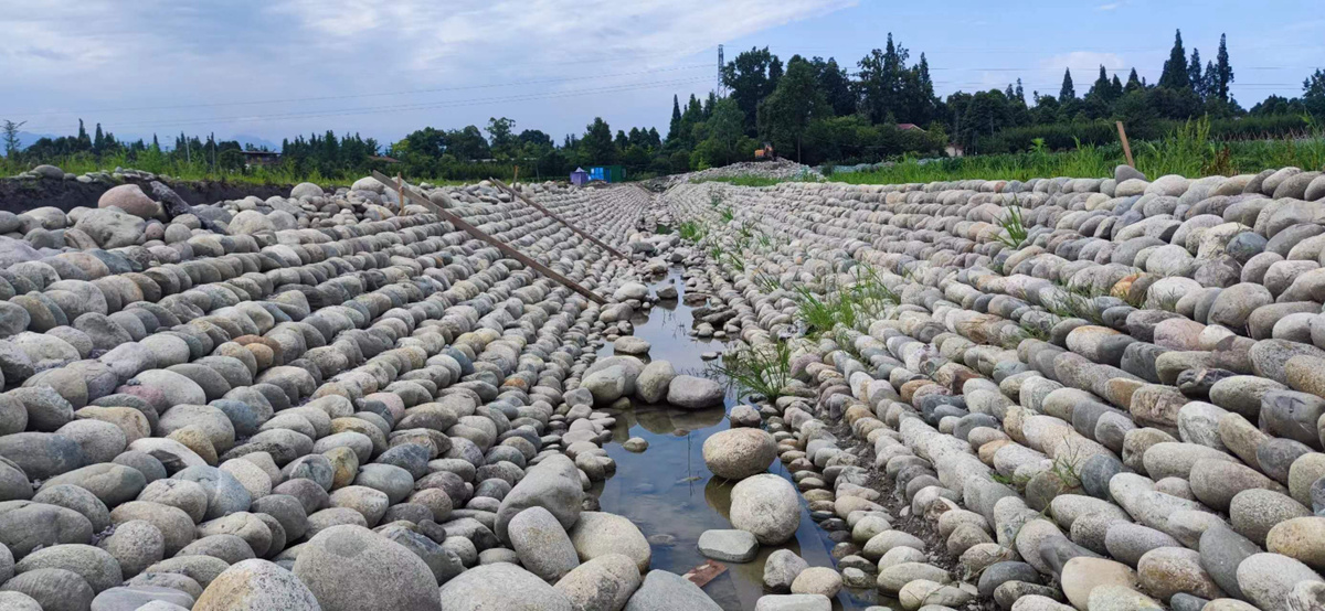 都江堰四大堰工技术之干砌卵石。