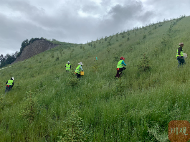 这个治理点是松潘县黄河上游水源涵养补给区综合治理项目点位之一,王海存是该项目现场负责人。“今年3月进场,用时4个月时间,历经修坡整形、挂网覆土、种草植树、育苗维护等多个步骤,这里的荒山变成了如今的青山。”王海存说,修复不易,管护工作更是需要长期坚持下去。