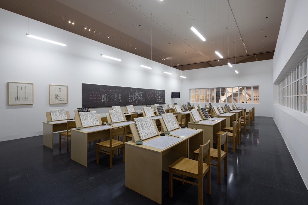 徐冰《英文方块字书法教室》;综合媒材互动装置;尺寸可变;1994-1998(成都市美术馆 供图)