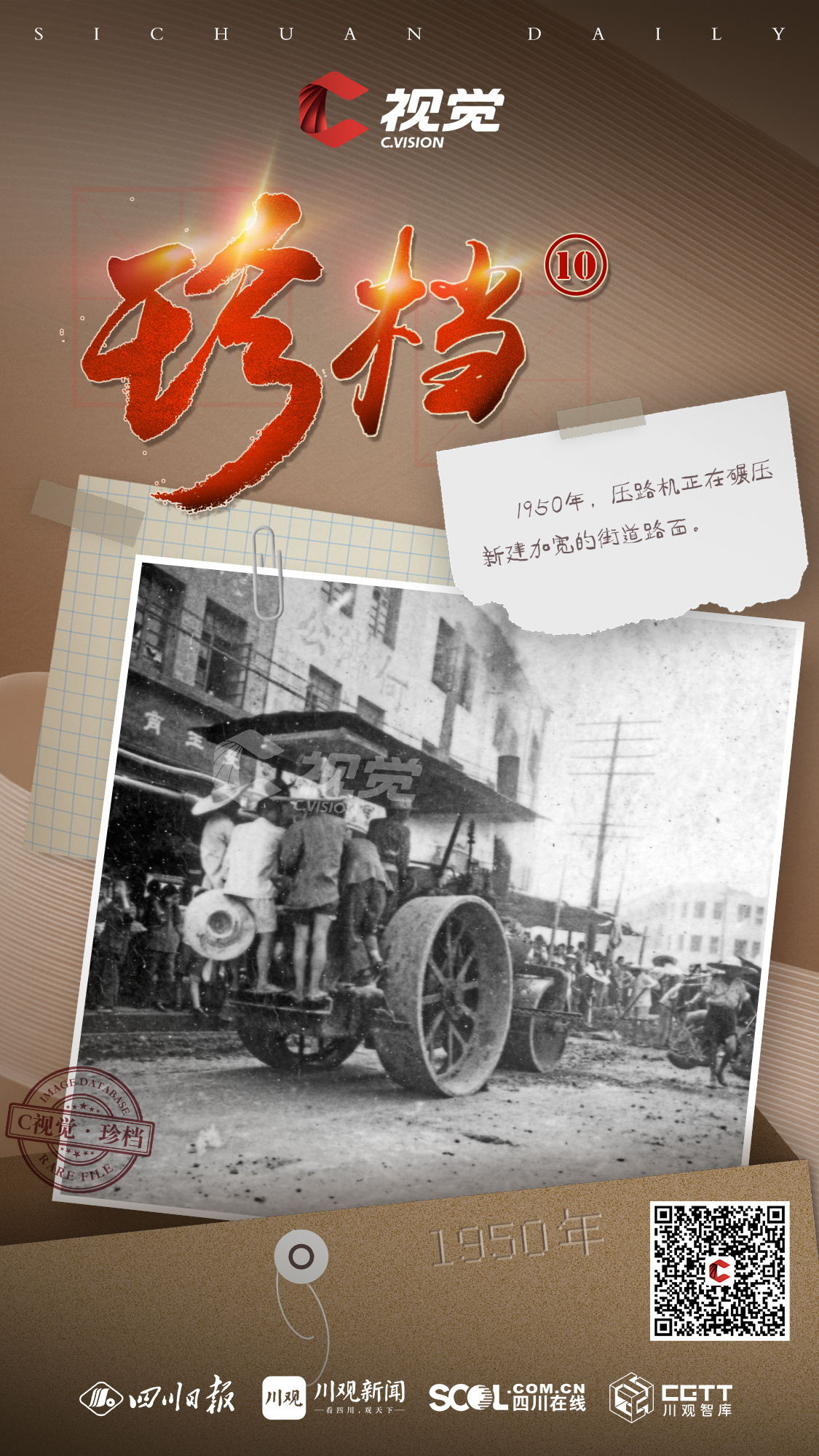 由中共四川省委宣传部指导,四川日报报业集团建设运营的“C视觉历史影像数据库”已于今年4月23日上线。我们在收集、整理、归纳C视觉影像数据库历史影像的同时,推出定期更新的历史影像栏目——《珍档》,这里的每一张老照片都承载一段历史记忆,讲述一个动人故事,感受一种时代脉动,您能阅读到一部记录四川发展变迁的历史相册。
