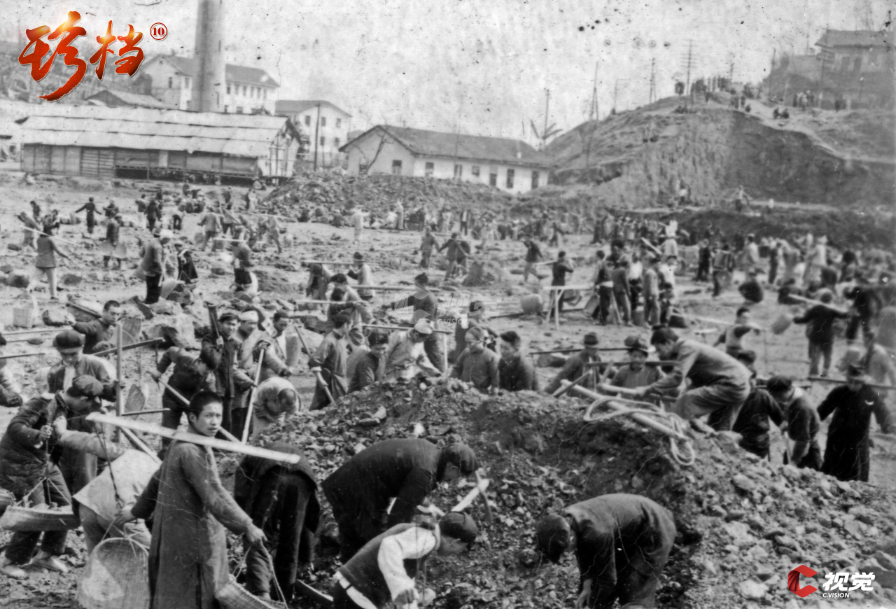 1951年,重庆市各级党员干部和群众积极参加修筑大田湾体育场的义务劳动。