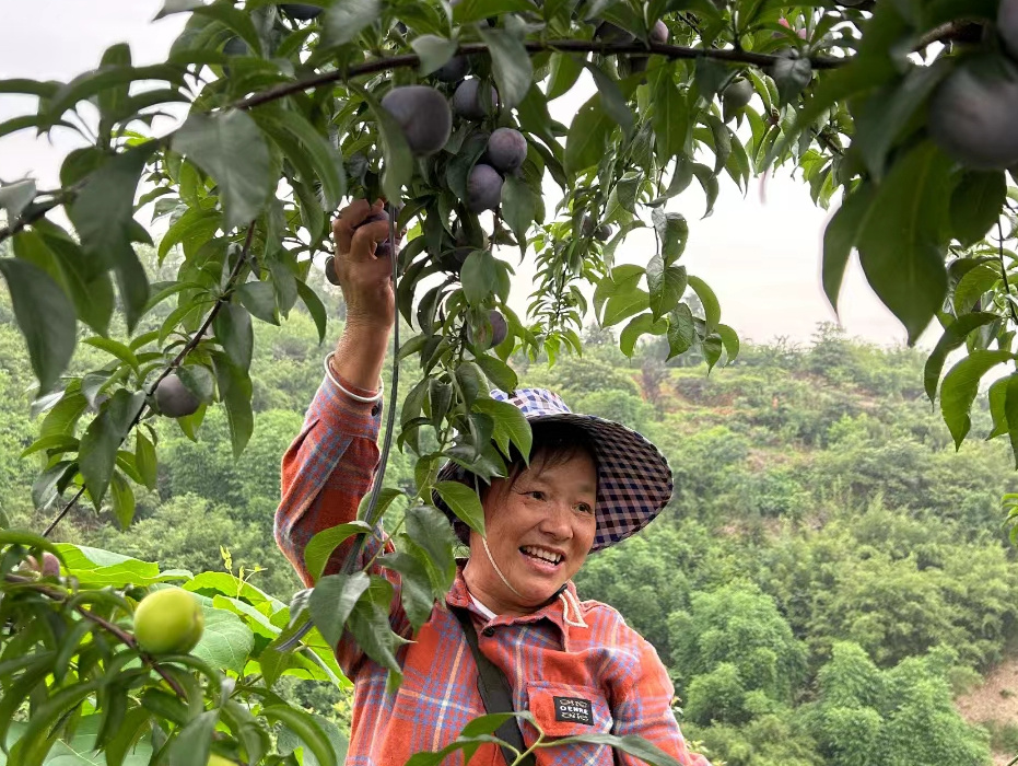 杨家村新任第一书记刘永彬和驻村工作队员在得知这一情况后,第一时间组织村“两委”干部前往李子基地了解情况,摸排清楚数量和销售意向等,与村“两委”干部商议对策,想方设法解决果户燃眉之急。树上挂着大量成熟的果实,通过组织党员志愿者进行分批次采摘,经过几天辛勤劳作,一颗颗香甜可口的李子完成了采摘、分装、称重。