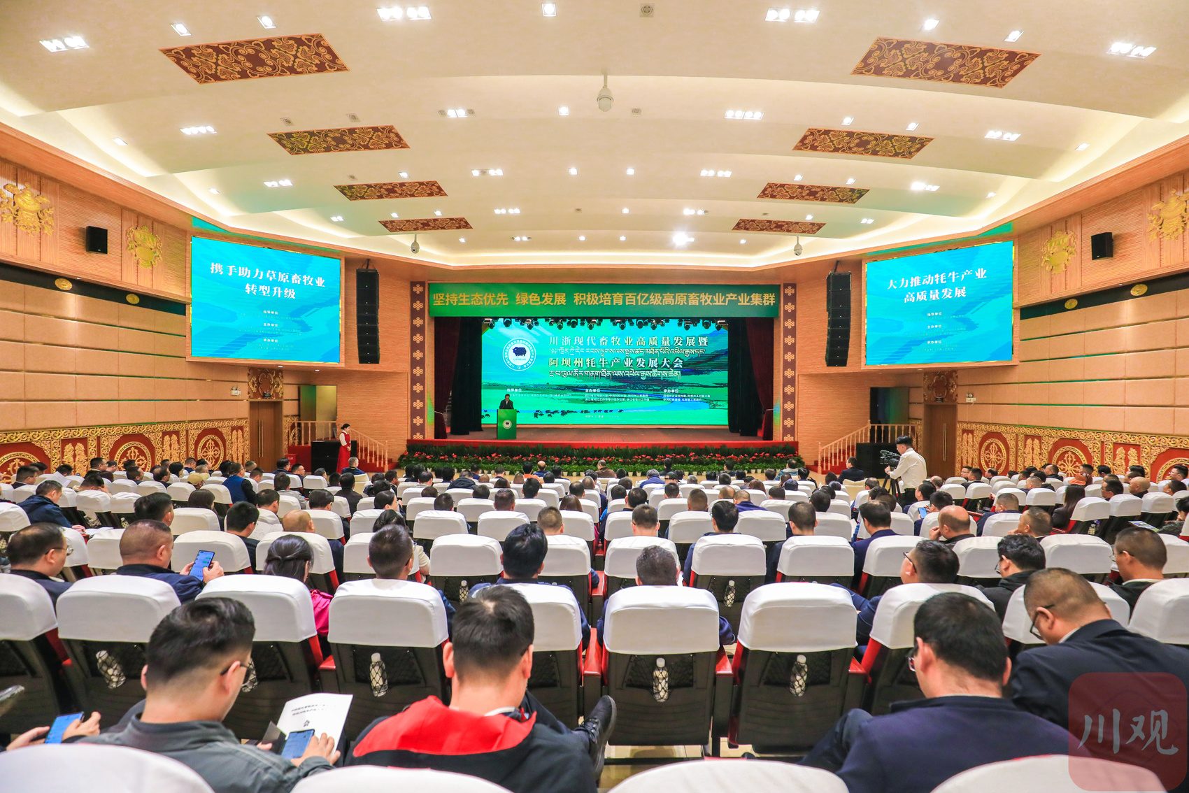 2022年,阿坝全州牦牛存栏200余万头、出栏50余万头,生产优质牦牛肉奶22万吨,牦牛产业成为阿坝农牧业名副其实的“第一产业”“第一品牌”,也成为农牧民持续增收和乡村振兴的重要基础。为推动全州牦牛产业发展,阿坝州将积极推动牦牛产业转型升级,提升饲草料生产能力,大力开展牧草和牧草种子生产基地建设,培育产加储销一体的草业企业。目前,全州建有优良草种子生产基地4个、草产品加工点17个,人工草地保留面积200万亩,有效缓解草原承载压力。