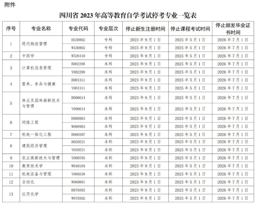 附件:四川省2023年高等教育自学考试停考专业一览表