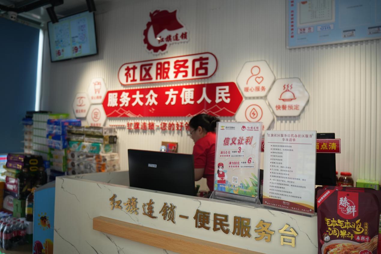 值得一提的是,红旗连锁还与彭州市委社治委携手,在好物街上策划落地了“红旗社区服务店”。该店植入了众多服务项目,如,志愿者服务报名登记、社保医保查询打印、精神文明宣传等。目前,这家店的工作人员是一名来自东林社区的微网格员林泽琴,她表示,“小店虽小,但为街坊邻里、居民游客提供店外休憩平台、店内自助茶歇,欢迎大家前来购物、办事、休闲、打卡!”