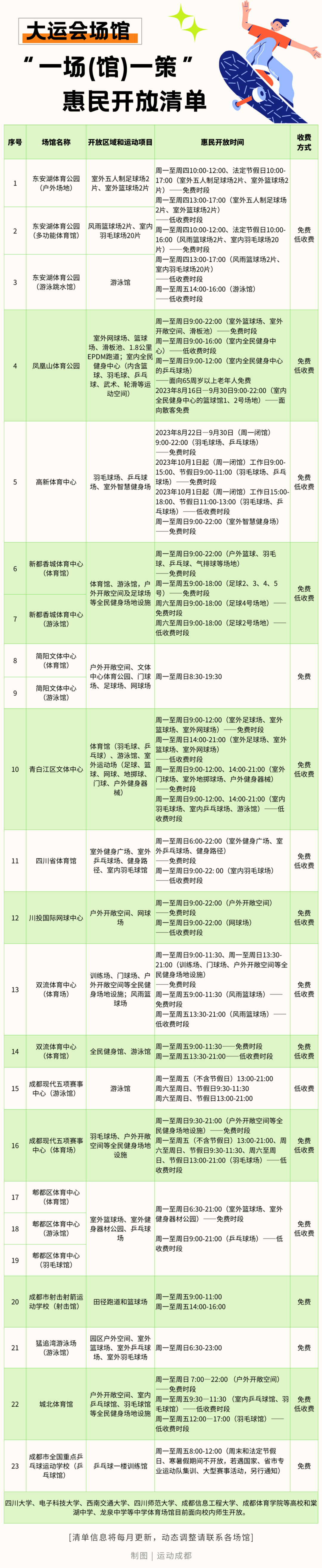 《大运会场馆“一场(馆)一策”惠民开放清单》