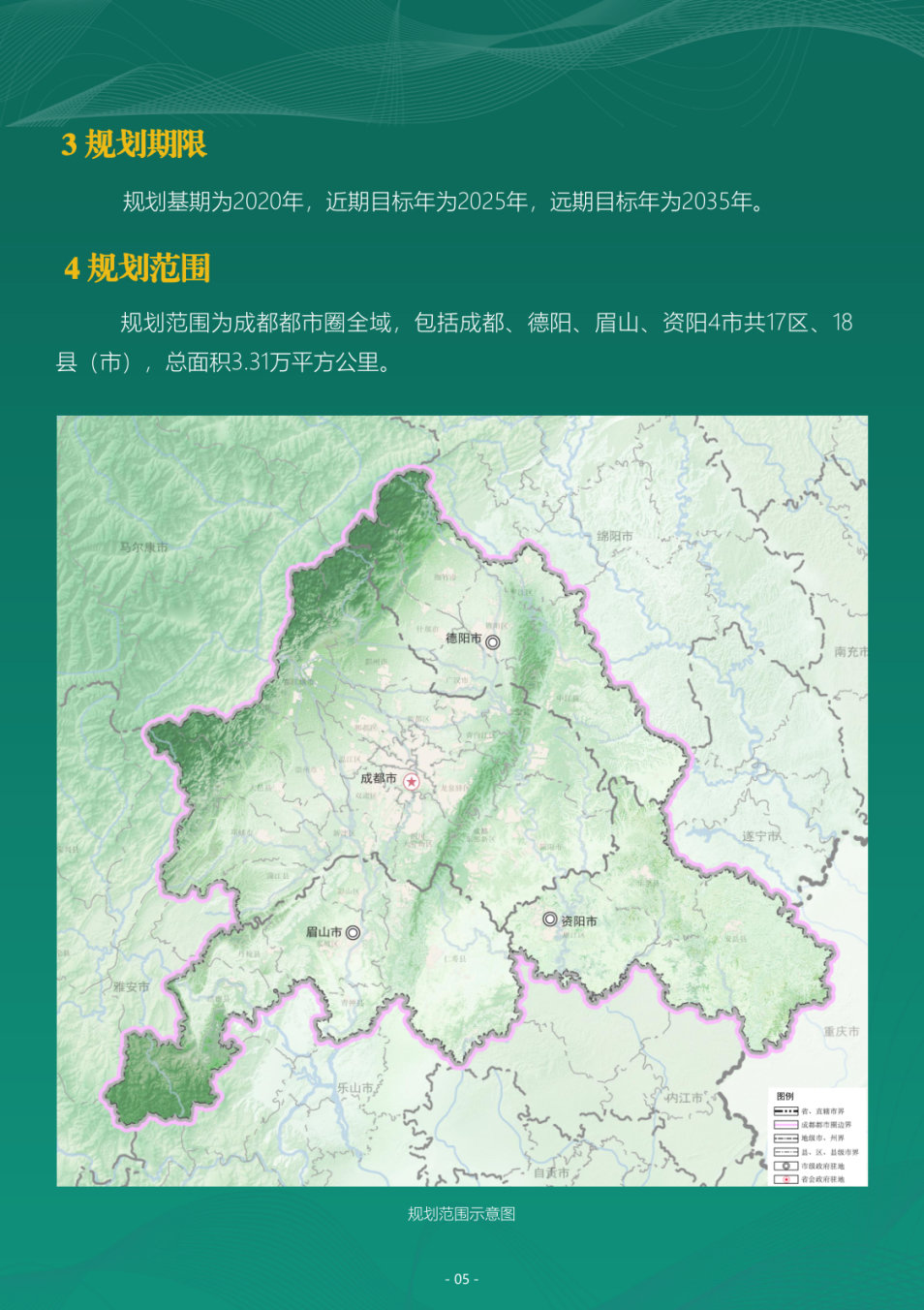 从规划范围看,为成都都市圈全域,包括成都、德阳、眉山、资阳4市共17区、18县(市),总面积3.31万平方公里。规划内容方面,《空间规划》包含9个方面,涉及天府粮仓、绿色生态、轨道建设、多层次区域协同等领域。