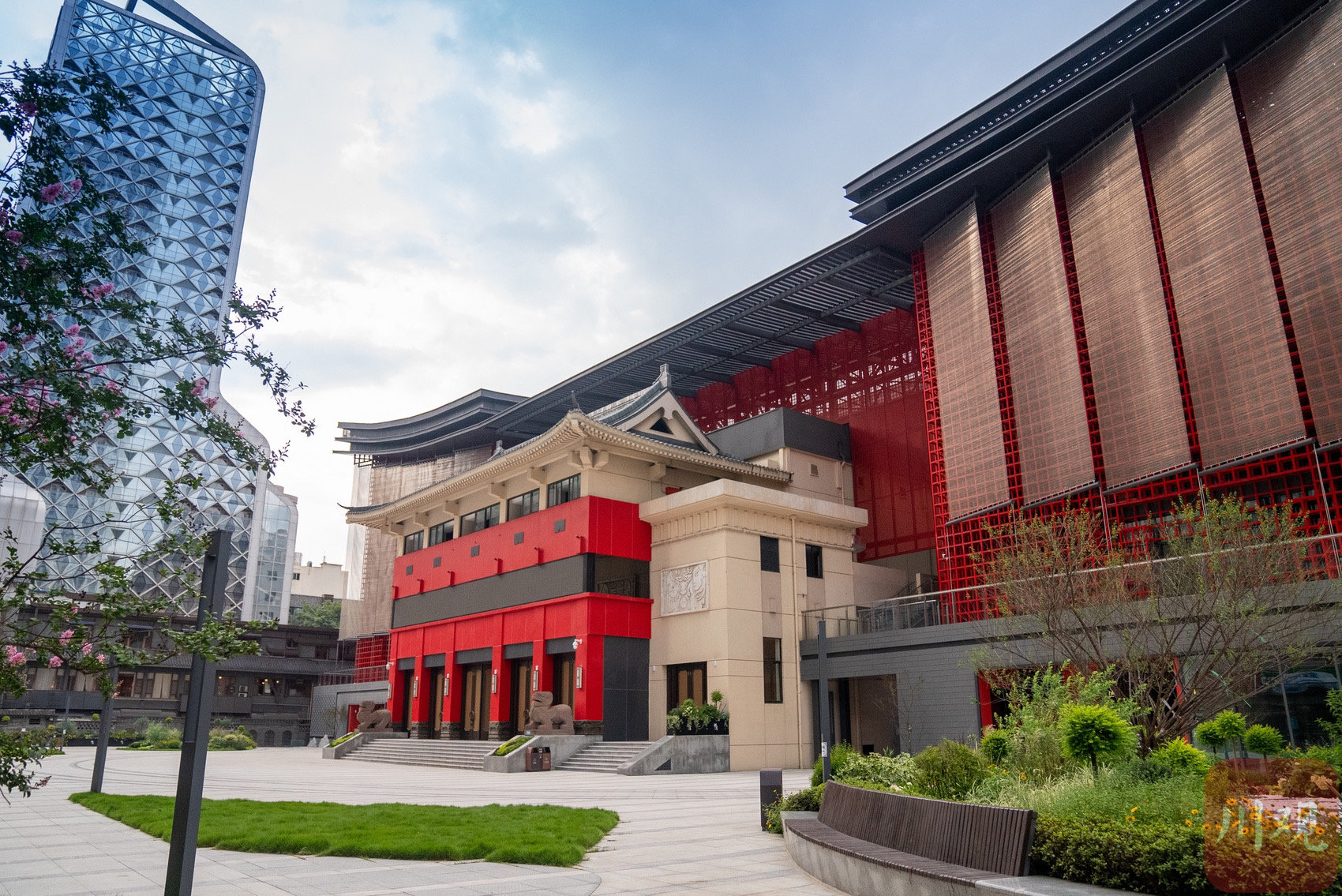 在华兴正街远远望去,成都川剧艺术中心浓烈红色外立面尽显“麻辣”,红色外墙与灰色飞檐式屋顶相呼应,端正雅致的线条与川西民居的自在灵动相融合,剧院内增设了360个座位,升级的舞台设备与现代科技结合,大幅提升了观众观看的舒适感。看川剧、学川剧,正在成为年轻人的新潮流,川剧这张经典文化名片,也将让世界看到巴蜀文化,看见成都。
