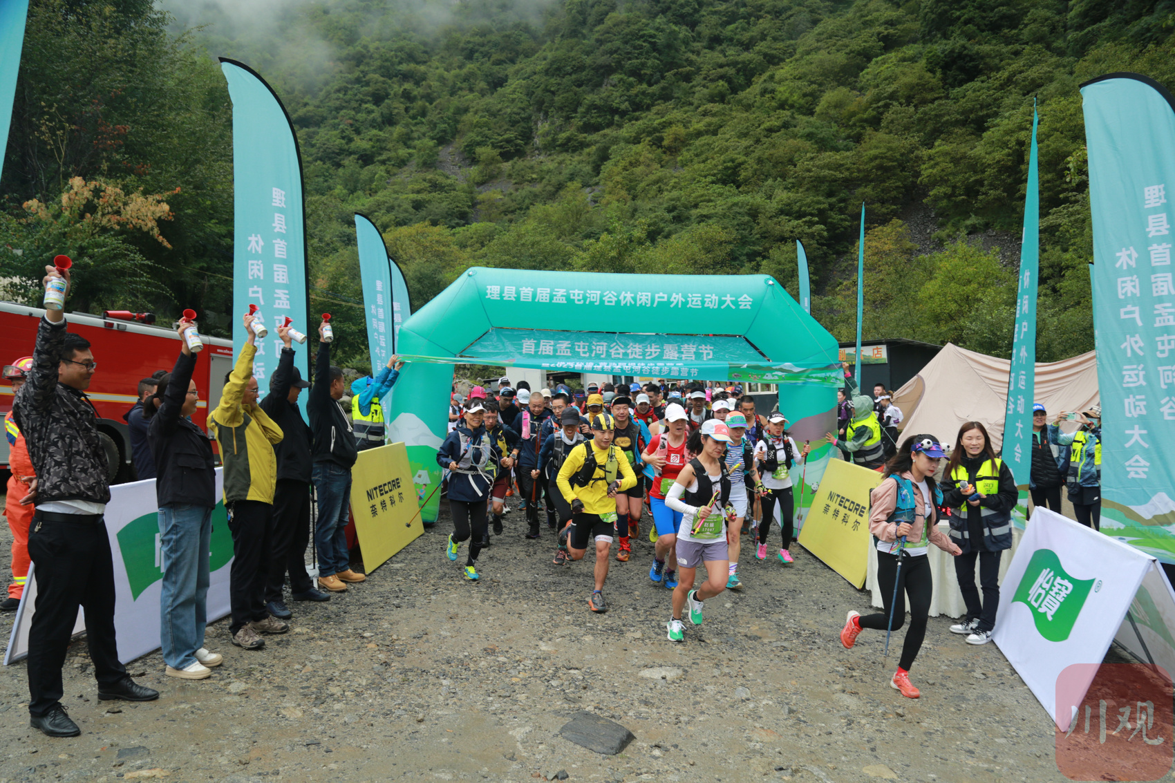 8月26日上午11时,随着发令枪响起,在阿坝州理县孟屯河谷,徒步比赛正式开始,参加D1速攀甲尔猛措组比赛的徒步爱好者兴致勃勃地踏上徒步路程,穿行在河流、原始森林之中。