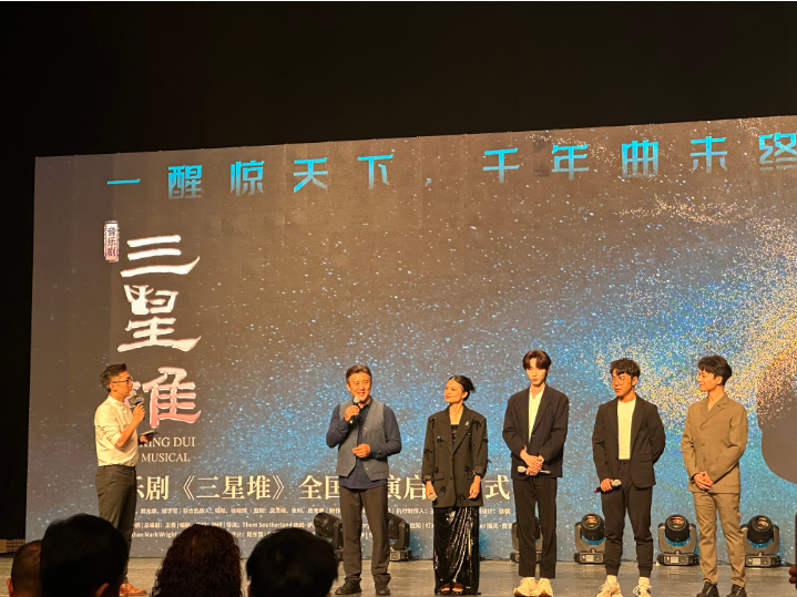活动最后,伴着鎏金沙缓缓流动,宣告音乐剧《三星堆》全国巡演正式启动。据悉,音乐剧《三星堆》将于今年十月在成都高新中演大剧院预演,随后前往深圳滨海艺术中心开启全国巡演。四川省文化和旅游厅相关负责人介绍,今年7月总书记来到三星堆,为剧目的创排也注入了新的动力,这次项目集中中英意等多国创作团队,希望未来能打造一部具有中国文化符号,具备全球影响力的作品。