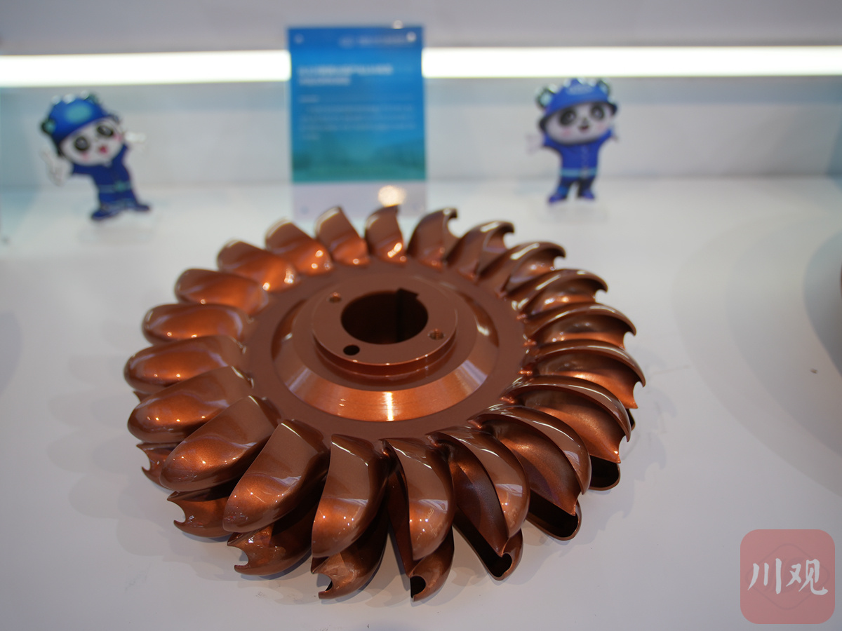 这样的突破,在东方电机展台上也可看到。国内首台单机容量最大功率150兆瓦级大型冲击式转轮于今年5月在德阳下线,实现我国高水头大容量冲击式水电机组关键核心技术国产化“从无到有”的历史性突破。单机容量更大的500兆瓦冲击式水轮发电机组将落地西藏扎拉水电站,国机重装的展台上就有冲击式水轮机的底座模型。