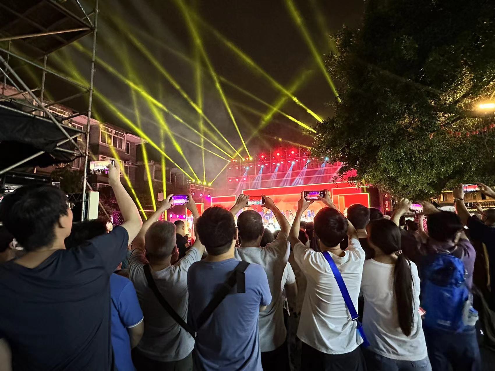 成都代驾小哥张志强刚下班,他一边推着电动折叠车,一边全神贯注地看表演,被李伯清老师逗得前仰后合。“终于见到活的李老师了。”他也希望,以后能多点露天看演出的机会,让本地居民和游客朋友都能体会四川曲艺文化魅力。