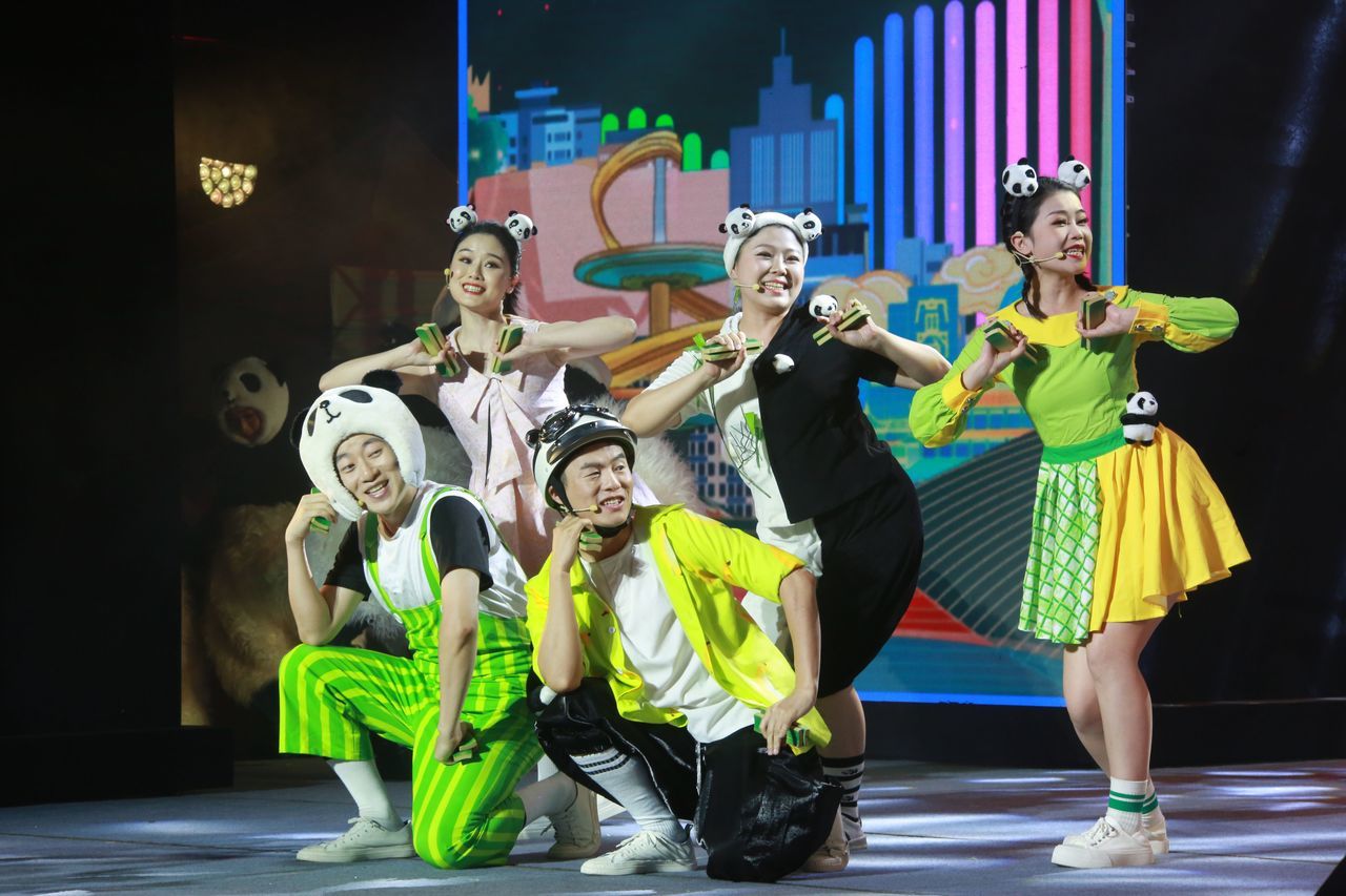 演员们时而用生动的四川话模仿生活中充满烟火气的吆喝叫卖声,时而充满活力地演绎“熊猫车灯”,古雅的《凤求凰》唱出了卓文君与司马相如的深情,《三星伴月》的演员身着富有青铜色彩的厚重服饰,让四川曲艺与古老的中国文化碰撞……张旭东(叮当)、钟燕平、张晓东、袁琪四位主持,饱含深情地用充满艺术化的语言,带大家走进这场属于曲艺人,也属于老百姓的表演。