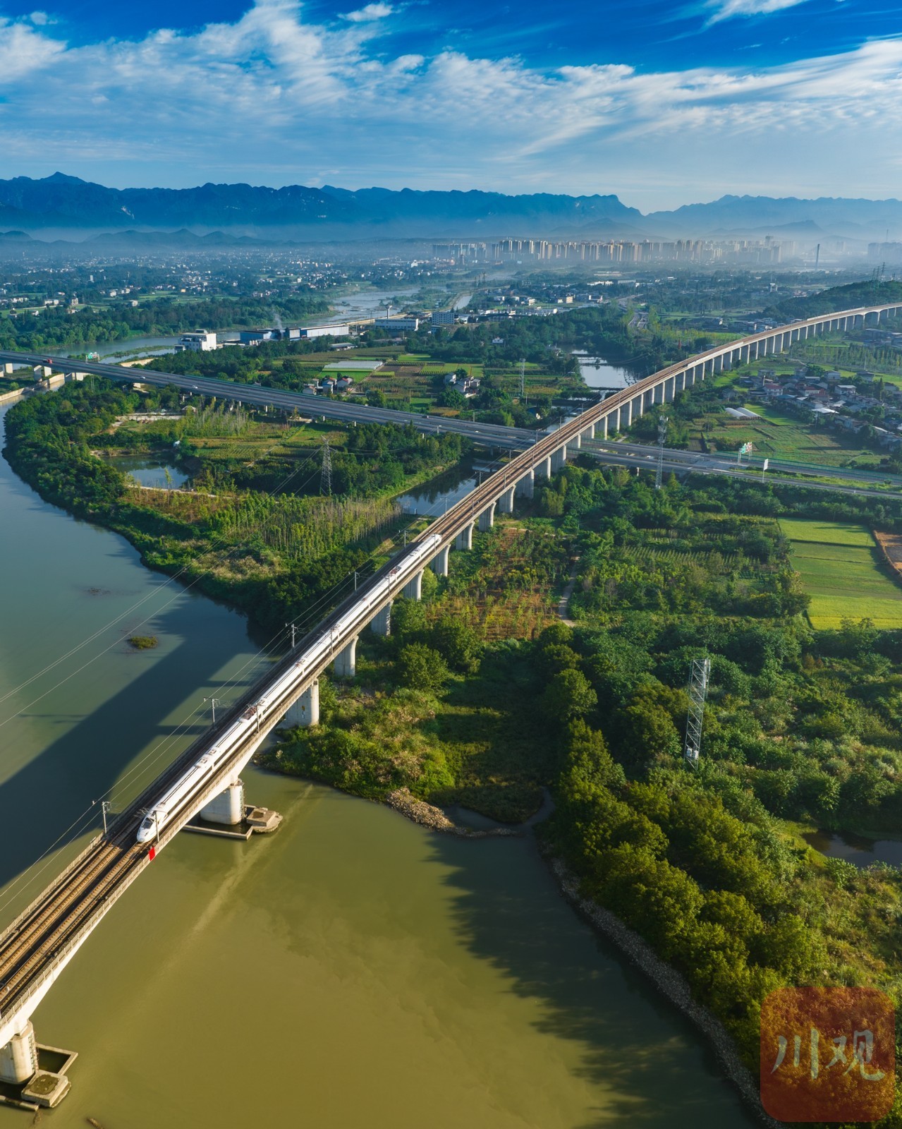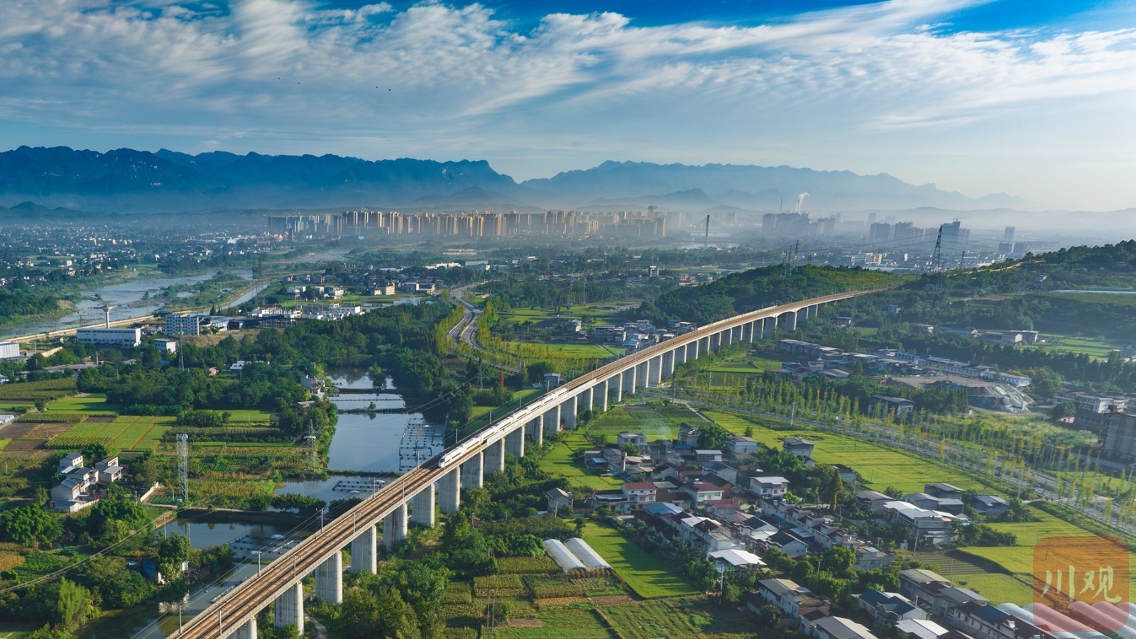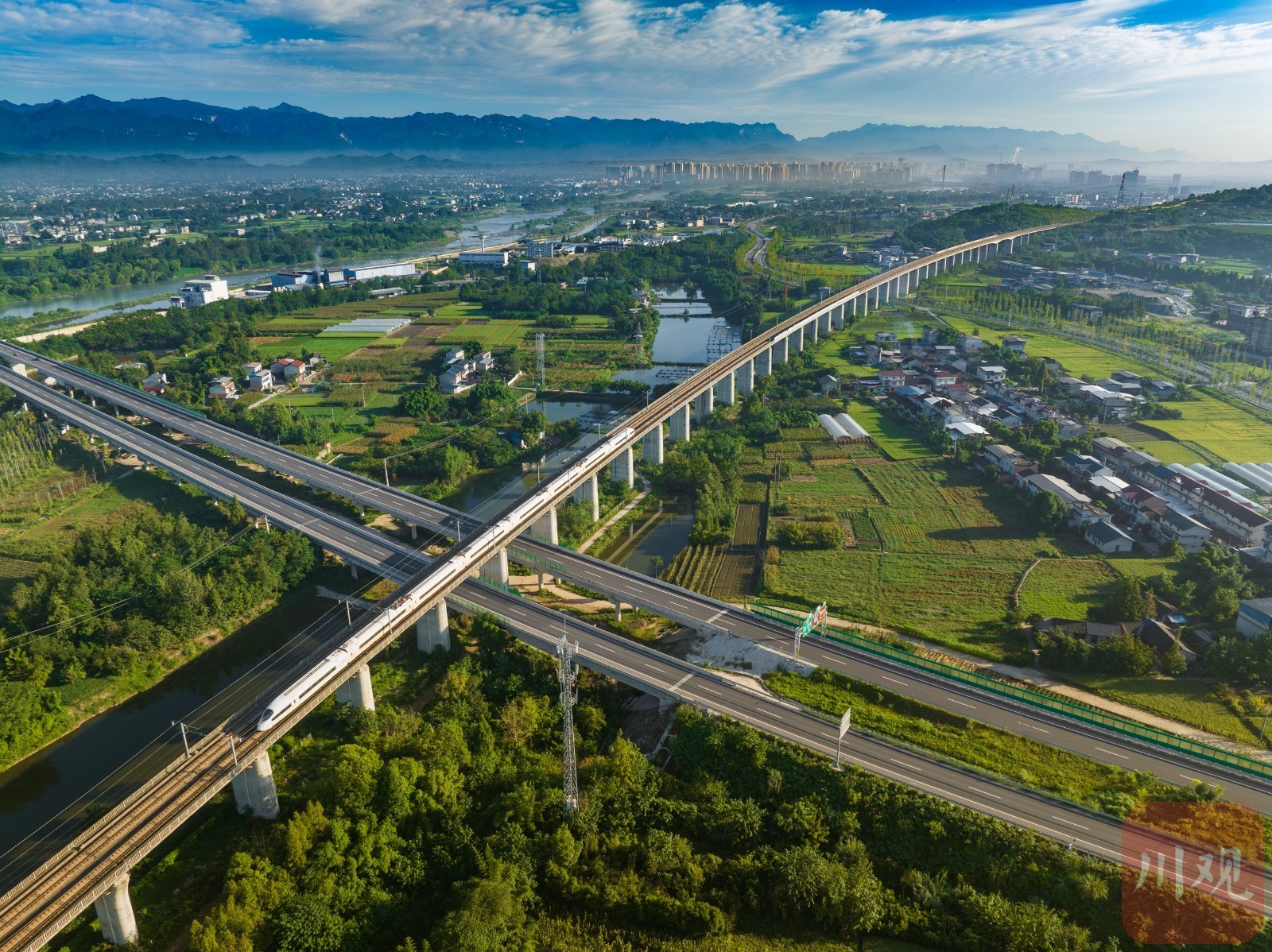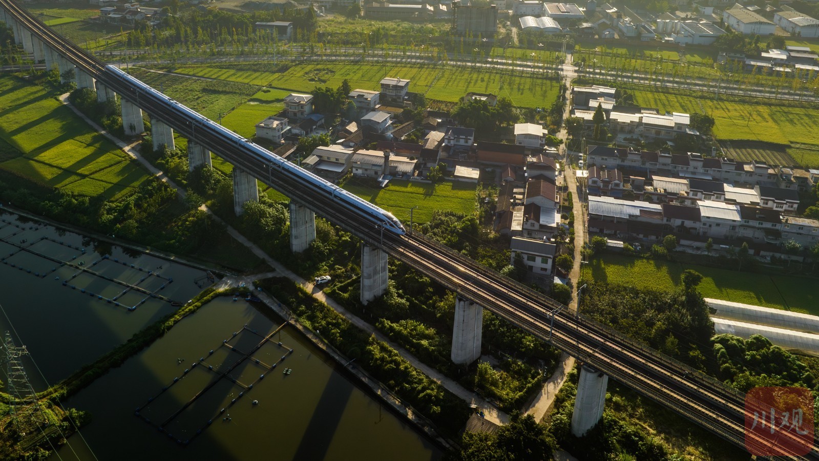 秋日,绵阳江油市天气晴好,沃野千里。多条铁路、公路在亟待收获的稻田上交汇,列车不时驰骋而过,一路稻香扑鼻,一幅“丰”光无限好的乡村振兴画卷展现在眼前。