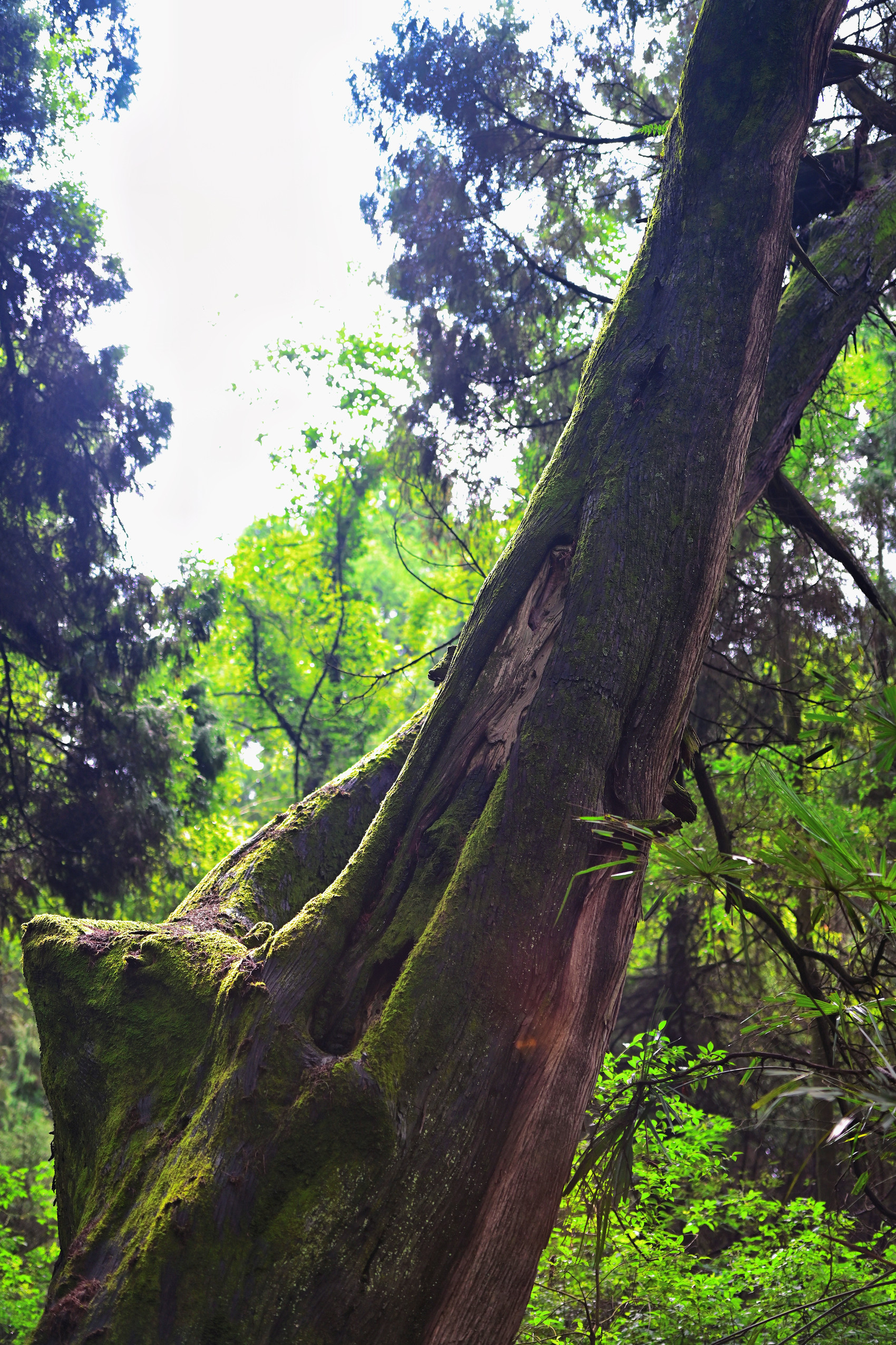 这株古柏的树干直径有半米,树干上出现了一个巴掌大小的“坑”,这是树洞的一种,“坑”里已经被厚厚的苔藓覆盖。