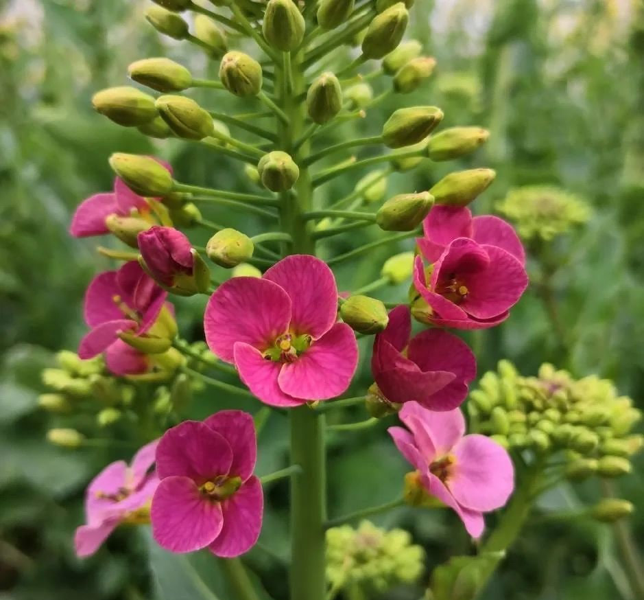 油菜育种领域开始大范围利用这个超小概率产生的特殊材料,一些成果还成功实现了转化。从此,田间便多了粉色、橙色等其他颜色的彩花油菜。
