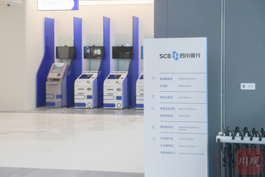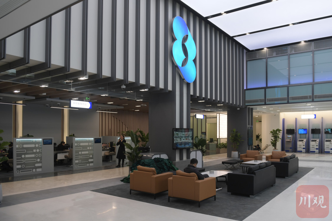 四川银行总行位于天府新区成都科学城兴隆湖北侧的天府数智谷创新基地园区,总部选址于此,具备了先天的科技优势和人才优势,将对后续总行科技和产品研发提供强有力的人才支撑。此外,其总行营业部的硬件设施也是相当具有“科技感”。