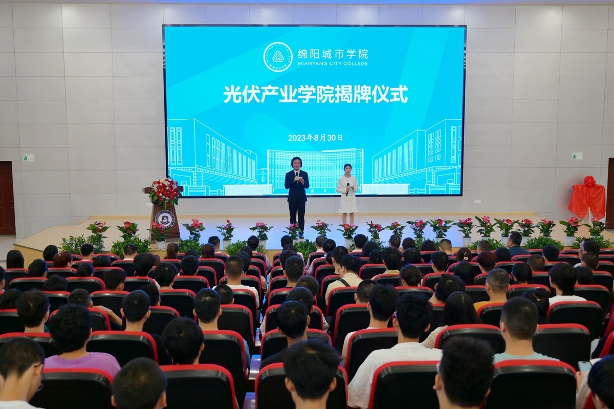 8月30日上午,绵阳市首个光伏产业学院在绵阳城市学院安州校区内正式揭牌成立。这是绵阳市在“企业办班”“教学工厂”“生产实训一 体化车间”等多种育人形式的又一次重要探索。