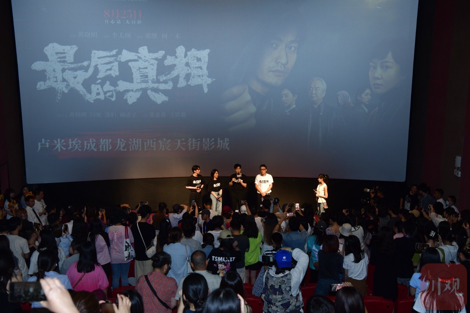 8月30日,电影《最后的真相》导演李太阁携主演黄晓明、闫妮、张嘉鑫亮相成都卢米埃影城与观众见面。