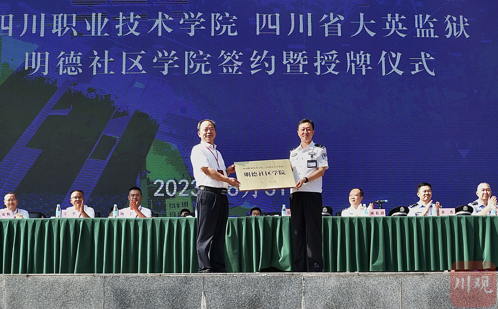8月31日,四川职业技术学院与四川省大英监狱共建明德社区学院签约仪式暨授牌仪式在遂宁市大英县举行。双方以共建社区学院为基础,将开展线上学习、学历提升、技能培训、科普推广、心理咨询等监校教育活动。