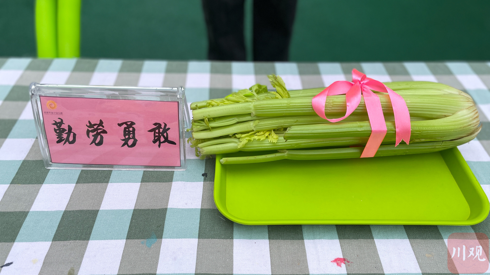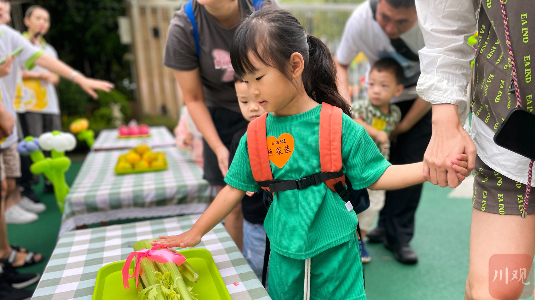成都市金沙幼儿园,家长带领孩子摸芹菜
