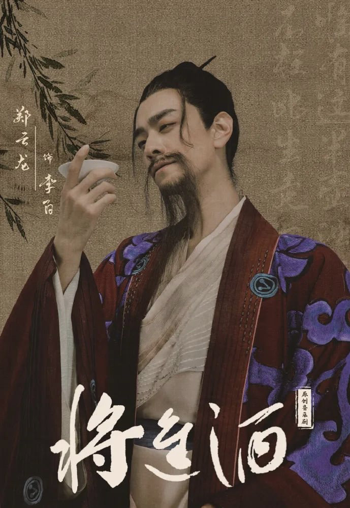 《将进酒》是李白代表作之一,恣意纵横尽显“诗仙”的浪漫豪情。此前,在北京举行的《将进酒》首轮巡演启动仪式暨主创见面会上,剧中角色定妆照正式对外发布,音乐剧演员郑云龙将作为该剧艺术指导和主演,化身为“诗仙”李白。