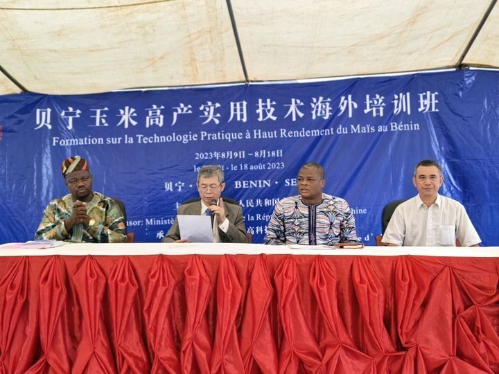 8月9日,2023年贝宁“玉米高产实用技术培训班”开班仪式在位于塞梅波吉市的中国援贝宁农业技术示范中心举行。