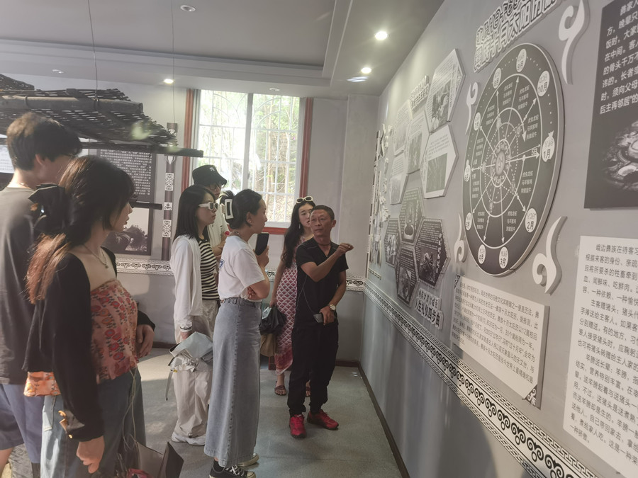 领略完美轮美奂的自然风光后,采风团一行来到了古井村、底底谷村和双九村,参观彝族特色民居和乡村旅游发展情况,了解彝族的婚俗文化和人文风情,聆听彝族美神“甘嫫阿妞”爱情故事,并沉浸式观看当地群众表演的《哭嫁》、月琴、克斯等彝族音乐元素。