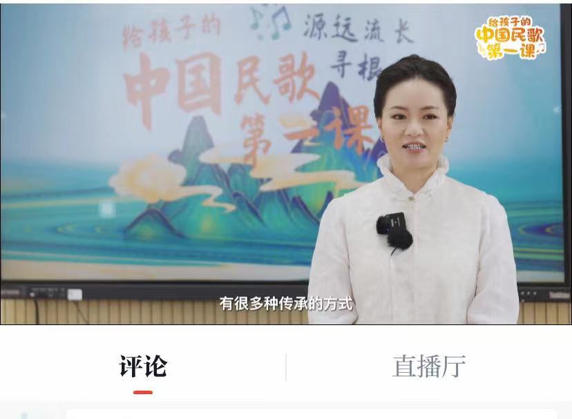 “民歌可以表达情感、记录生活”“民歌不仅搭建起了一座延续中华民族历史文明和加强各民族沟通交流的桥梁,还承载着我们几千年的文明和记忆”“中国民歌以生生不息的活力,通过一代代的传唱,让大家感受到共同的民族情感,传承着蓬勃向上的民族力量和自强不息的民族精神”。整堂课下来,雷佳借助民歌这一最贴近人民群众日常生活的艺术形式,教育和引导孩子们弘扬中华优秀传统文化,传承民族民间音乐艺术。