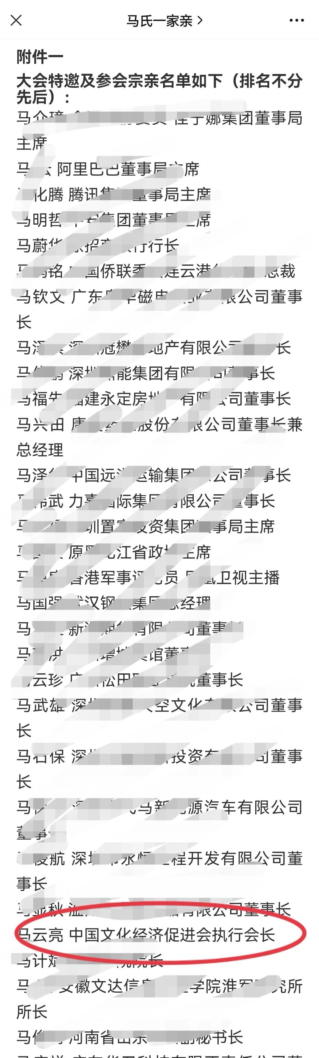 中新财经记者还发现,“马氏一家亲”微信公众号发布的“2015中华马氏宗亲(深圳)大会暨中华马氏宗亲总会成立大会邀请函”中,大会联系人包括马云亮。彼时,马云亮的职务为中国文化经济促进会执行会长,邀请函中还公布了马云亮的联系电话。根据天眼查公开的信息,该联系电话与睿泽艺术2016年报中提供的企业联系电话一致。