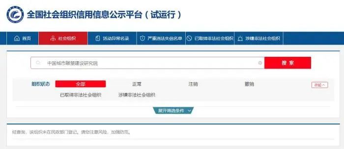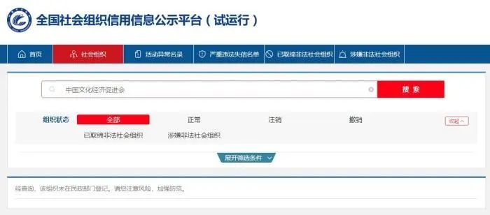 但中新财经记者在全国社会组织信用信息公示平台查询发现,中国城市雕塑建设研究院、中国文化经济促进会均未在民政部门登记。