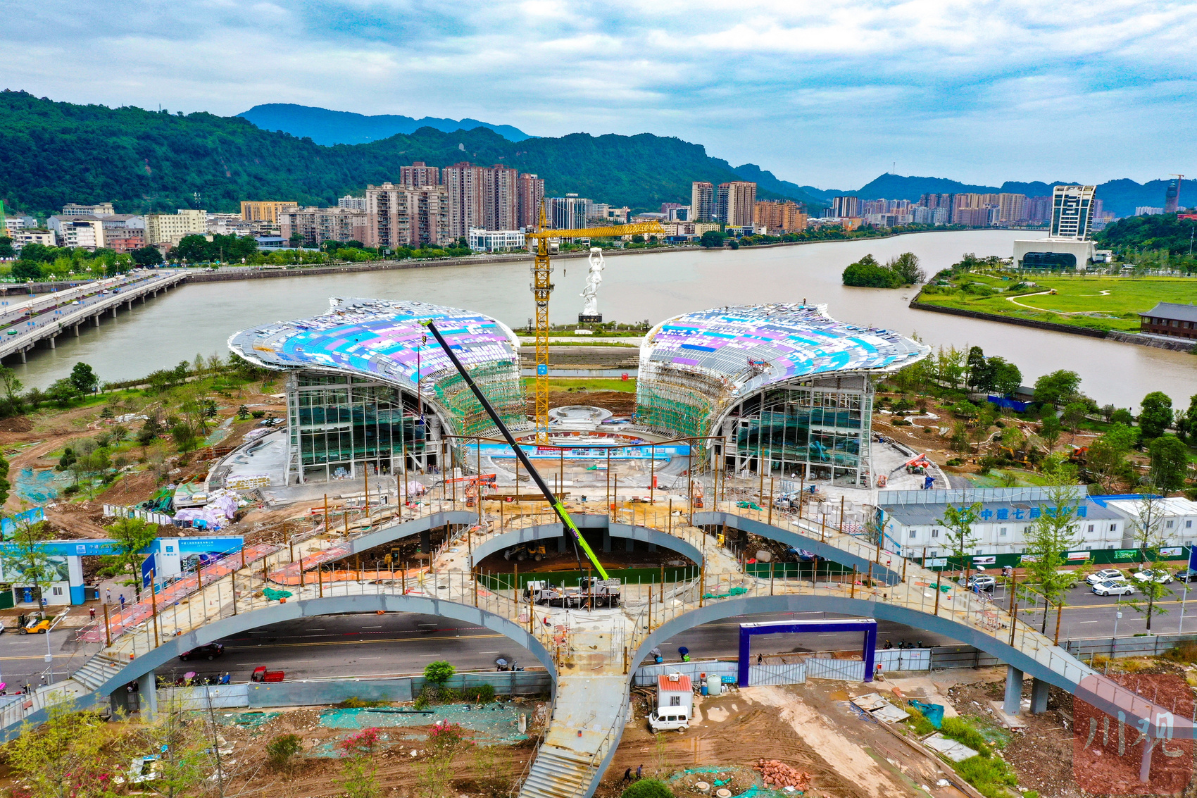 在雨城区清风路,女娲广场片区提升项目(雅女公园)建设现场,两栋羽翼造型的建筑已具雏形。以“雅鸟展翅”为设计理念,该项目新建艺术中心、景观人行天桥,同时完善园林景观和文化设施,进行平羌夜渡沉秋水、金鸡飞过老仙家、蒙顶青山石芽茶等雅安古八景展示,着力打造为青衣江文化地标。