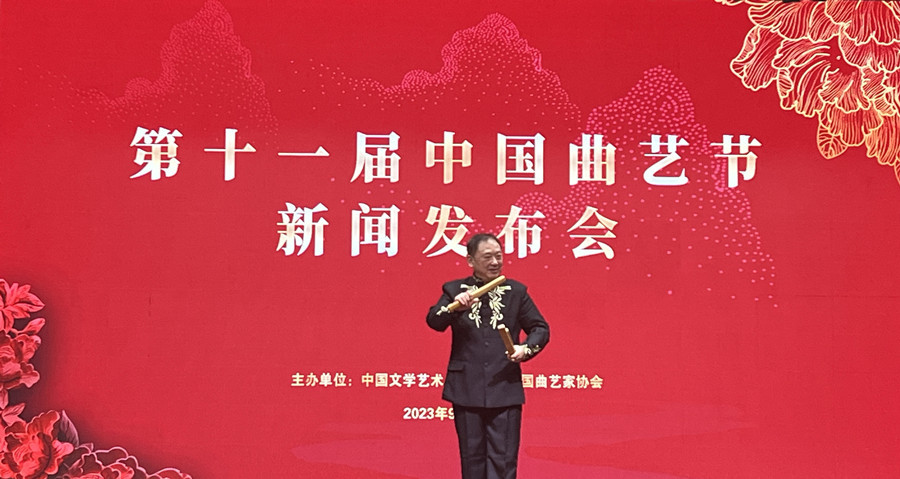 9月5日,第十一届中国曲艺节新闻发布会现场,新节目四川清音《峨眉山月》亮相,艺术家的精彩表演博得“满堂彩”。