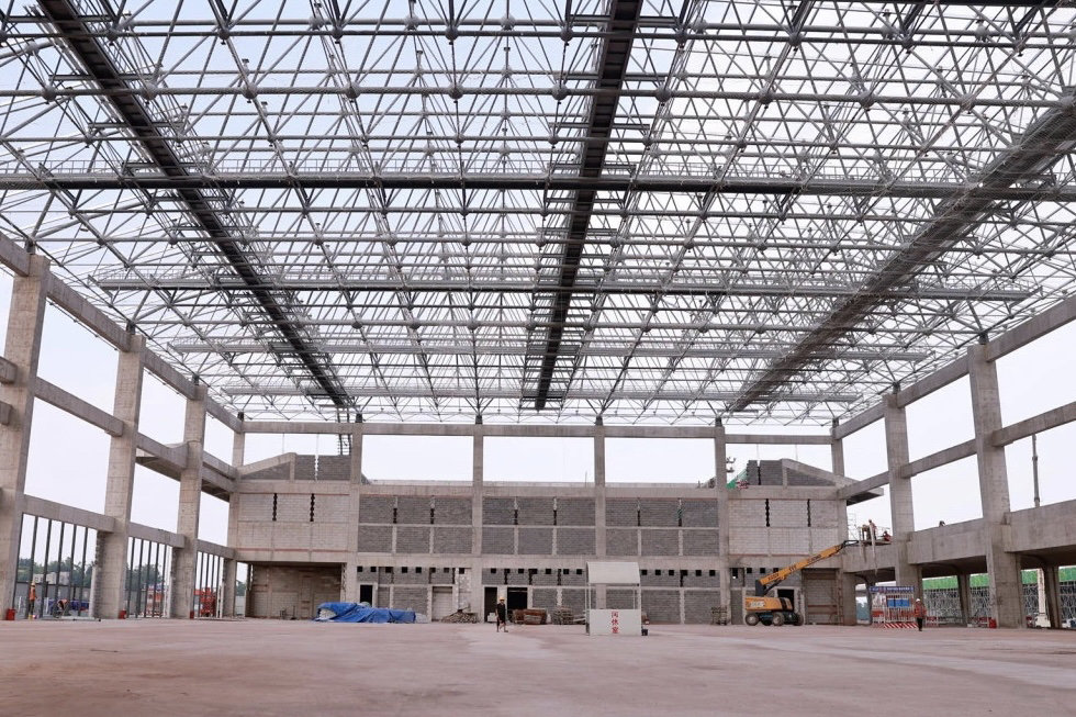 8月28日,泸县云锦镇渝昆高铁泸州东站施工现场,工人正忙着杆件安装、焊接等工作。室外,站房已初见雏形,基础屋面、外幕墙、内部装饰装修及站房附属配套工程都在同步展开。