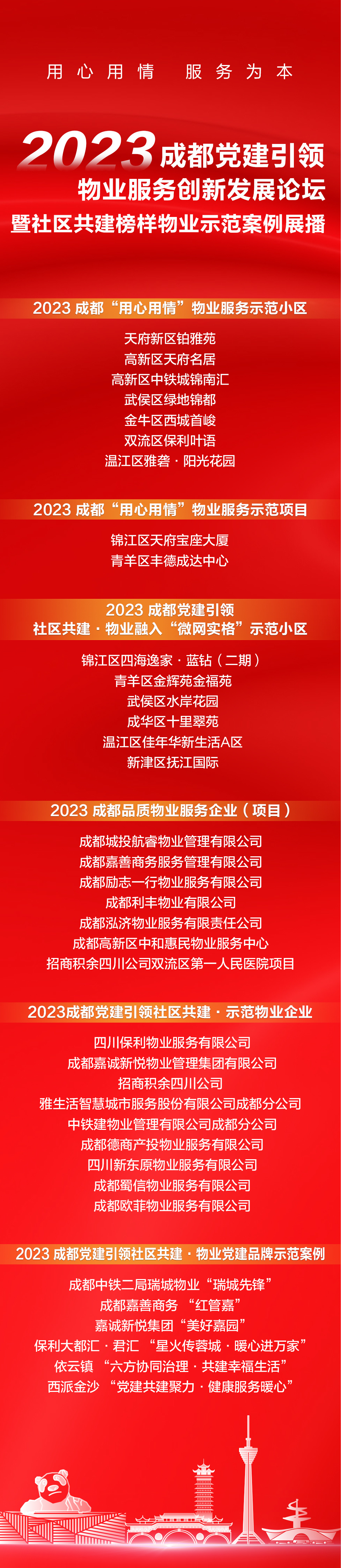 活动最后,“ 2023成都党建引领社区共建榜样物业示范案例”名单揭晓。
