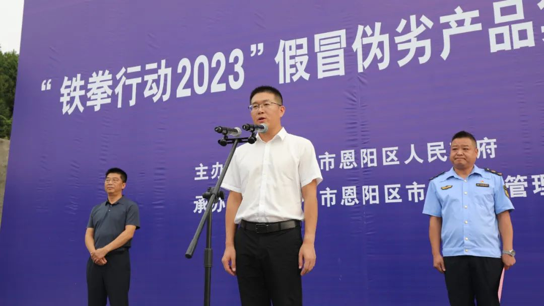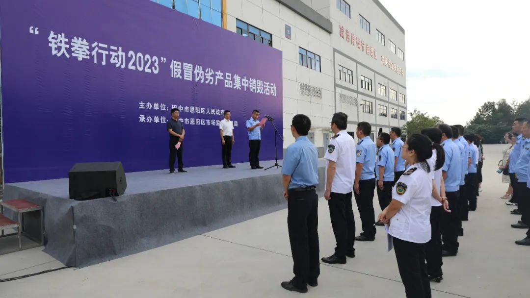 为展示打击假冒伪劣商品的决心和成果,震慑制售假冒伪劣商品违法行为,切实保护消费者合法权益,近日,巴中市恩阳区举行“铁拳行动2023”假冒伪劣商品集中销毁活动。恩阳区人民政府副区长屈富民出席活动,并宣布销毁仪式正式开始。