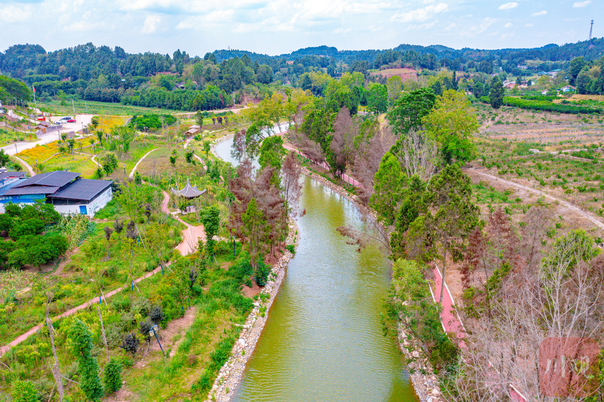 位于小镇的羊叉河乡村振兴景观示范带。(资阳观察 吴昊江 摄)