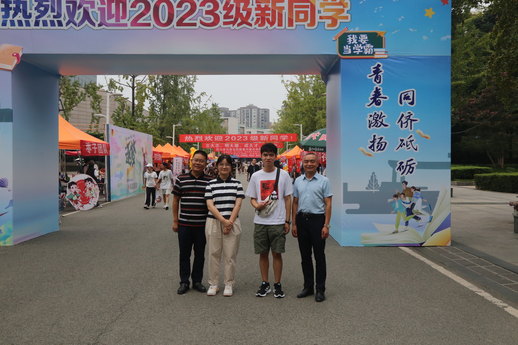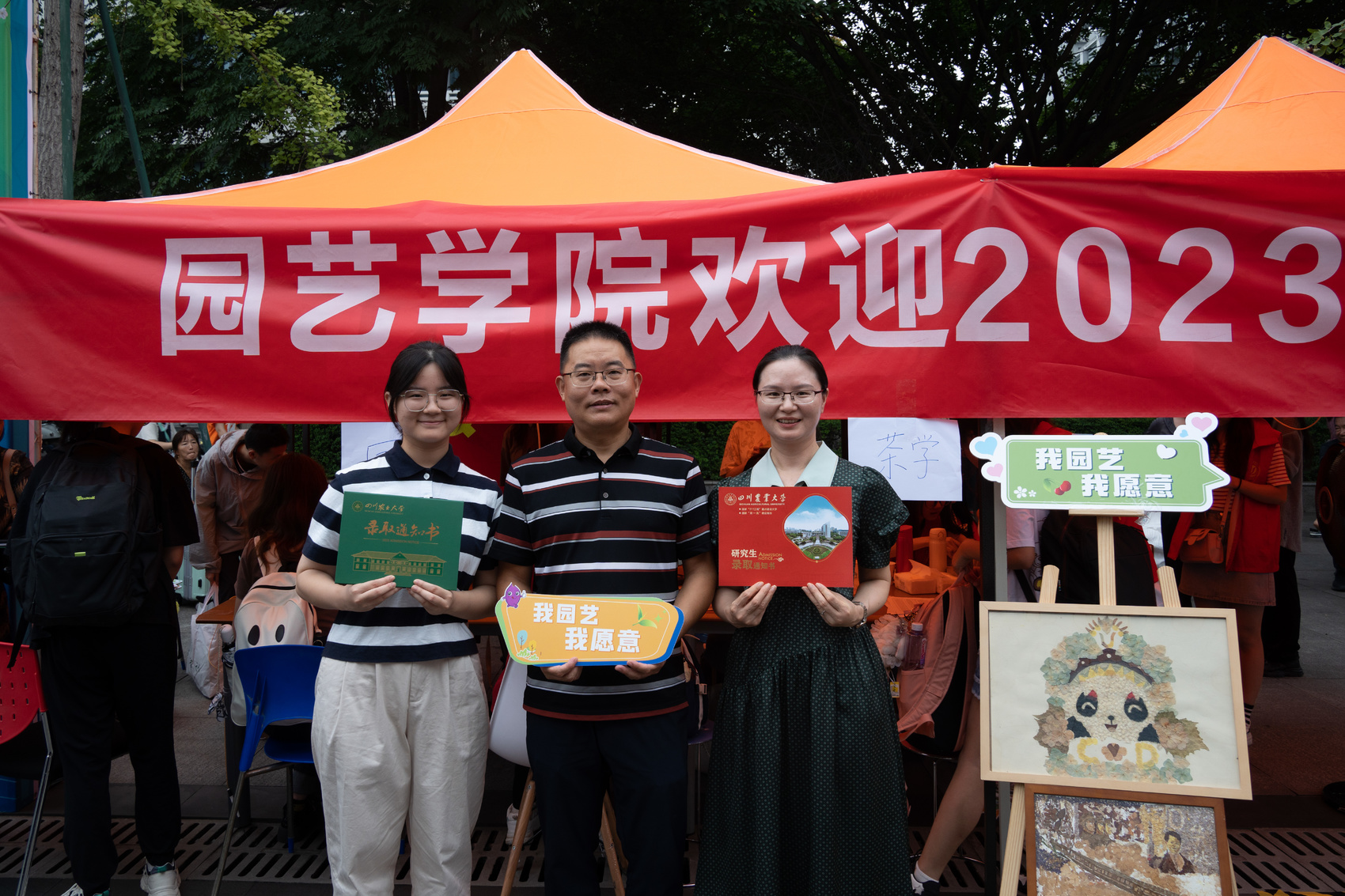 9月6日上午,四川农业大学2023级新生报到第一天,园艺学院的报到服务处迎来了两位特殊的新生——一对母女,女儿贺睿是园艺学院园艺专业大一新生,妈妈达庆波成为园艺学院农艺与种业非全日制研究生。在完成报到的那一刻,他们一家三口都有了“川农人”这一身份,因为,爸爸贺光伦也毕业于川农园艺学院。更为巧合的是,在报到点,贺光伦还遇见了同是来送孩子就读的同窗老同学王光华,他们惊喜地发现自己的孩子又成了同班同学。面对这一罕见的两代5人的园艺情怀,园艺学院副院长龚荣高笑称都是“园艺学院铁粉”。