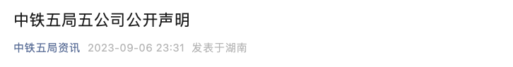 有媒体报道中铁五局五公司承建的青海同赛高速公路洮河大桥存在质量问题。9月6日深夜,中铁五局五公司发布公开声明,全文如下: