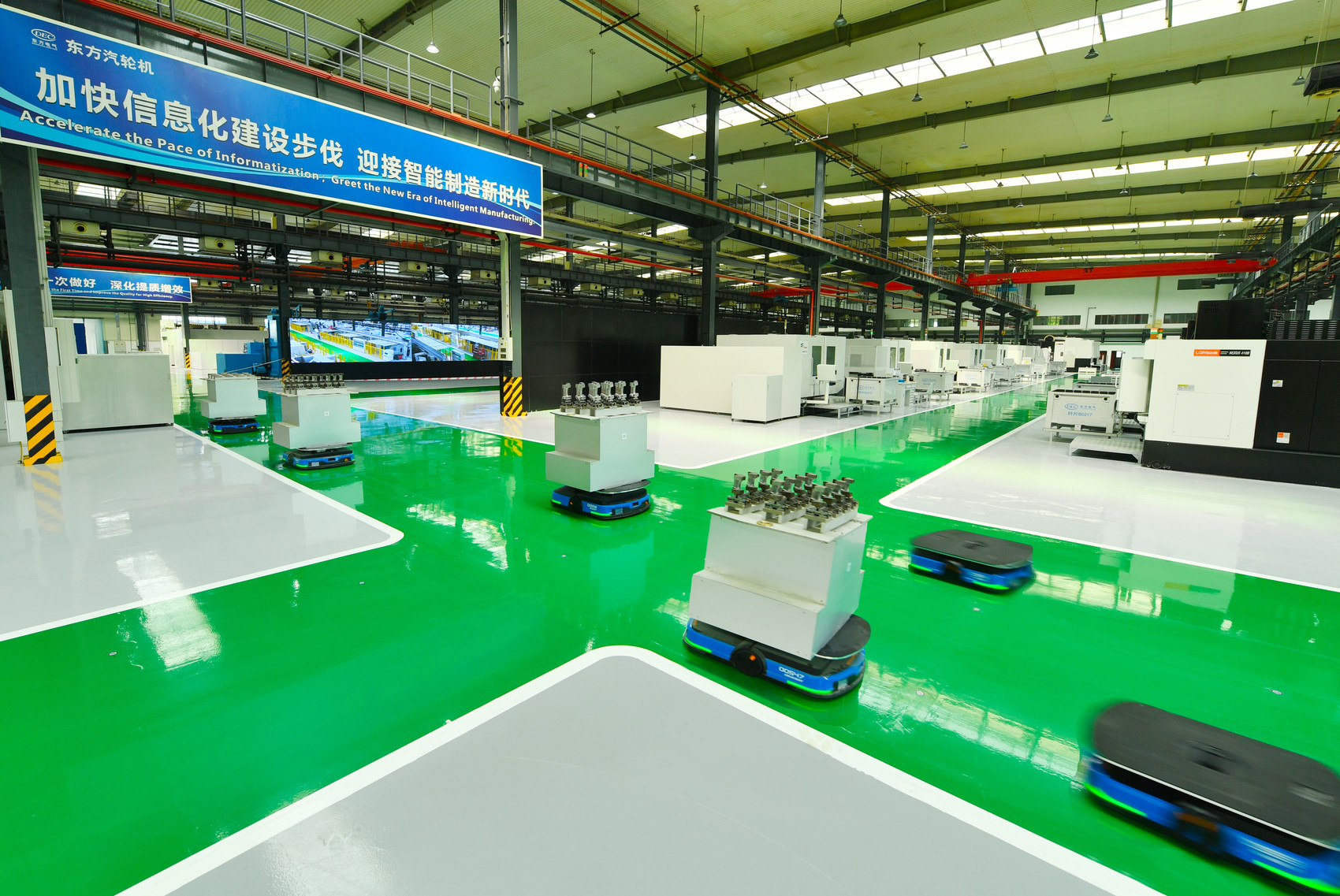 东方汽轮机打造的行业首个5G全连接数字化工厂。
