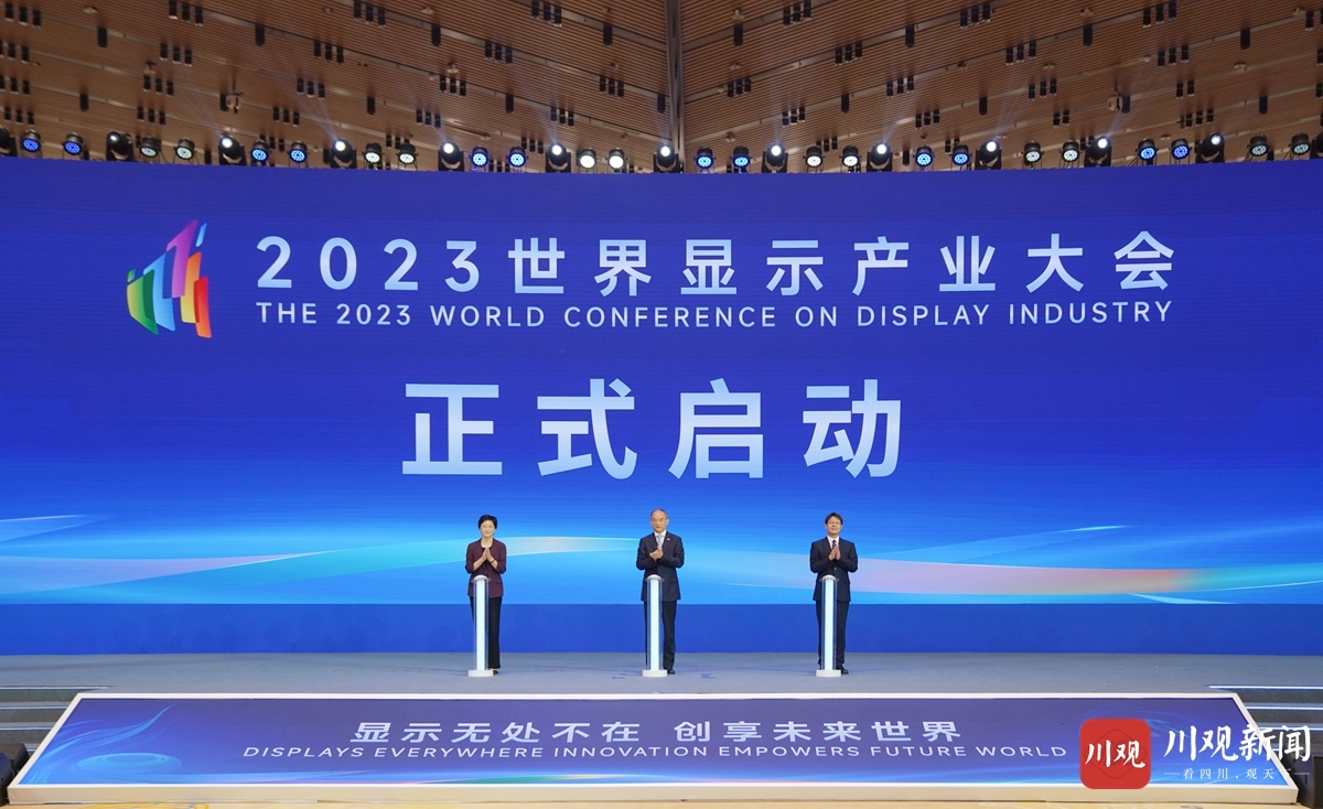 11时15分许,黄强、张云明、施小琳共同启动2023世界显示产业大会。