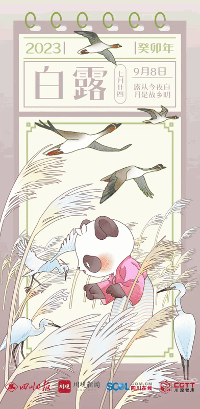 苍烟落照为玄鸟归之承色。玄鸟,就是燕子。白露时节天气凉了,燕子纷纷回到南方避寒。与此同时,南迁的大雁也通常在白露时节经过我国北方地区,经停芦苇荡等水域休息和补充食物,然后继续飞往南方的草地、河湖过冬。我国民间则有在白露这天喝白露茶、吃红薯、酿白露酒等习俗,在节令变化中迎接着丰收季的到来。