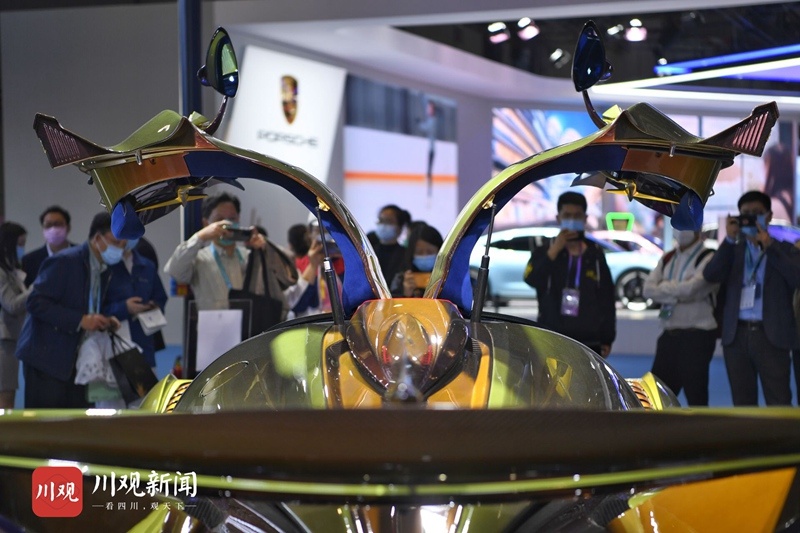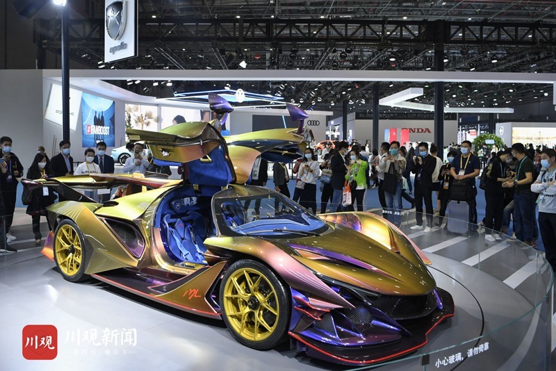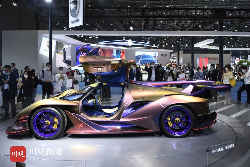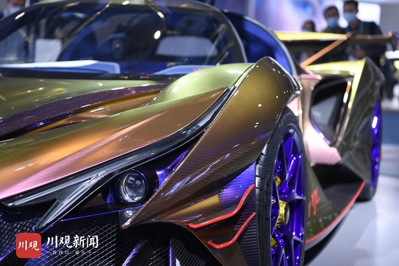 11月9日,第三届中国国际进口博览会汽车展区,一辆幻彩色的全球首款全碳纤维超级跑车,吸引了参观者的目光。