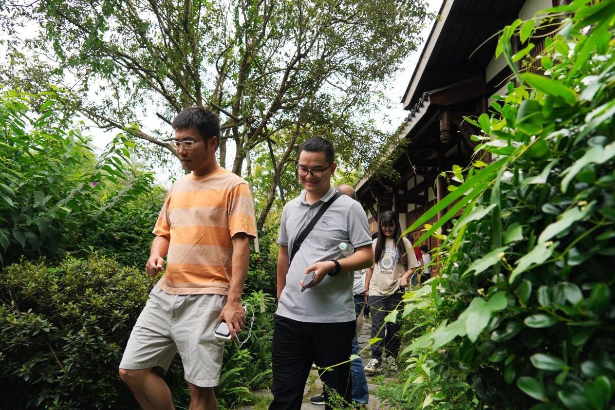 一行人沿着曲径通幽的竹林小道往上走,便会陆续看到几座掩映在花草林木中的老院子。“我们从全国各地搜集了许多川派老宅,沿用中国古建筑规制,保留原始房屋结构,最大程度还原林盘原始风貌。”成都天投集团有关负责人向记者介绍这片老院子营造的精巧之处。